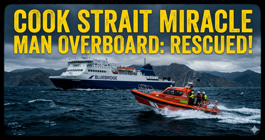 | Miracle in Cook Strait: Person Rescued After Going Overboard from Bluebridge Ferry |